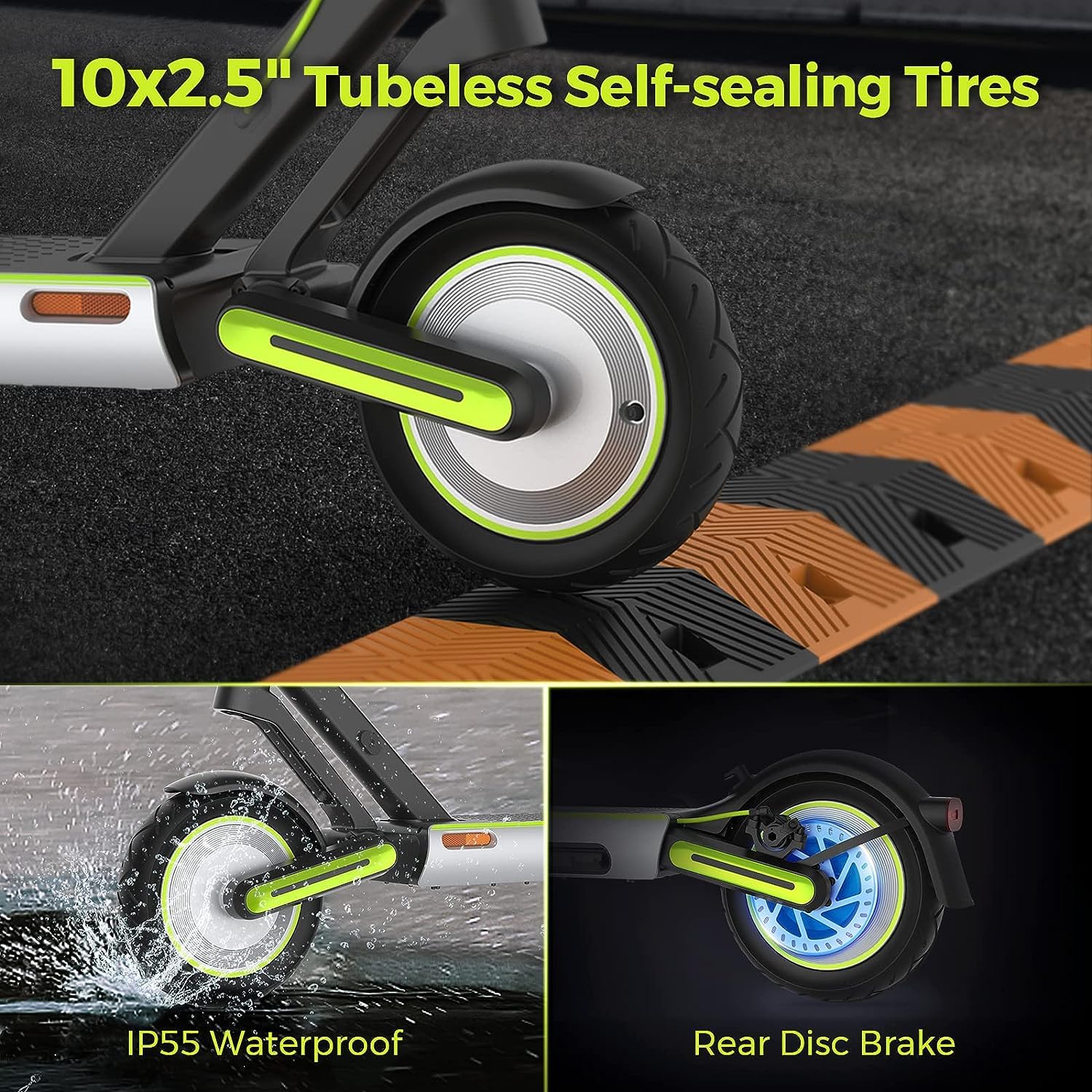 - ๐ดใIPX5 Waterproof & 10″ Self-sealing Tubeless Tyresใ:S65 Comes with 10-inch self-sealing tyres as well as IPX5 waterproof .it can fully ensure good traffic ability,and also have excellent shock absorption and safety. For various road conditions, even if the tire is punctured by nails there is no need to worry about leakage, making your riding more comfortable and stable.