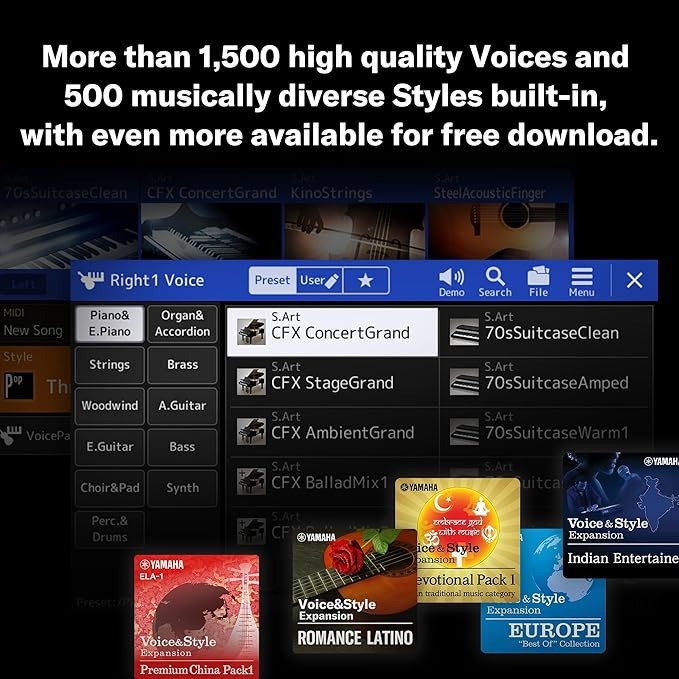 - 575 Styles (3x Intro, 4x Main Variation, 4x Fill, Break, 3x Ending) incl. 4 One Touch Settings per Style, Style Dynamics Control and Chord Looper