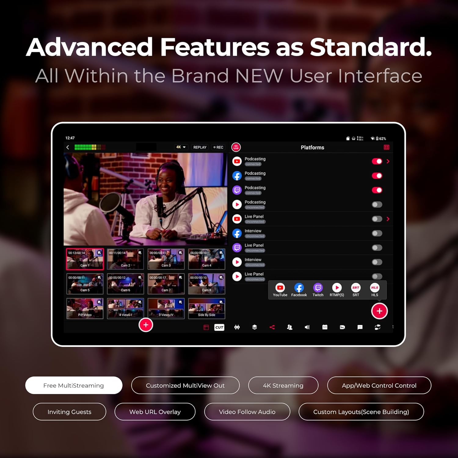 - MultiCam Instant Replay: Replay highlights instantly with 6 cameras at 1080p60, all in real-time for sports, events, or live productions